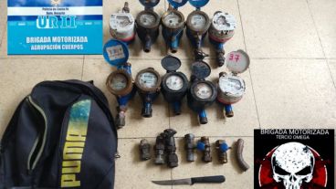 Al hombre detenido le secuestraron un cuchillo tipo serrucho que llevaba entre sus prendas y en la mochila tenía 10 medidores de agua, 3 llaves de paso y 4 roscas de bronce.