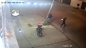 En el video de la balacera de este domingo se ve con claridad que los sicarios se bajan de un Chevrolet Classic gris, dejan el cartel y luego dispara cada uno con una pistola contra el frente de la empresa.