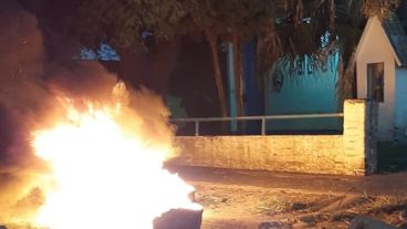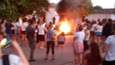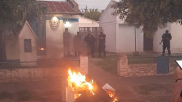 Telenoche Rosario (El Tres) reprodujo imágenes de la protesta, con numerosas personas que se hicieron presentes con pancartas y cánticos contra el sindicado femicida y prendieron fuego en la calle frente a la seccional.