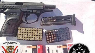Tras un rápido operativo cerrojo, personal policial localizó al sospechoso en la intersección de Piamonte y Ovidio Lagos, donde fue detenido sin resistencia. El acusado entregó a los agentes un arma de fuego tipo Bersa calibre .22, con cargador y ocho cartuchos.