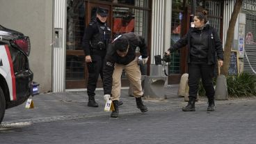 Algunos casquillos fueron encontrados al lado de un contenedor de residuos y otros en la vereda de enfrente, en las inmediaciones de una sucursal bancaria y debajo de las mesas de un bar.