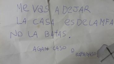“Me vas a dejar la casa. Es de la mafia. No la batas. Hagan caso o rafagazo”, decía el papel con errores de ortografía que le dejaron a la víctima el pasado sábado, y que hizo entrega a la Policía que se hizo presente en el domicilio.