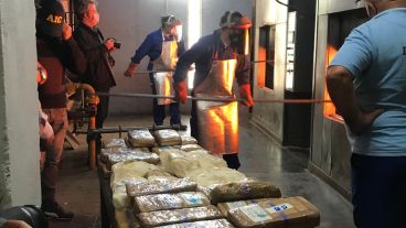 Este lunes en el Cementerio La Piedad, se quemaron 457 panes de marihuana y 60 de cocaína incautados en varios operativos llevados a cabo en la región de Rosario por la Agencia de Investigación Criminal (AIC).