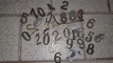 Javier Daniel A. (23 años) y Maximiliano Pablo M. (26) tenían en su poder una mochila con alrededor de 30 piezas que fueron sustraídas en la zona de Mitre al 2100, según exhibieron las propias víctimas, entre propietarios de casas y comerciantes, que se quedaron sin la numeración en el frente de sus inmuebles.