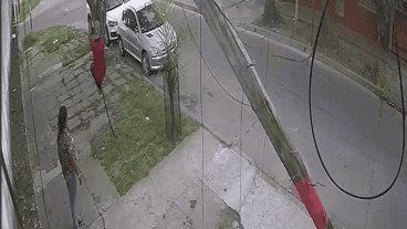 En la filmación se ve que primero se colgó y aflojó el cable. Luego regresó con un cómplice que lo ayudó a subirse para retirar lo que quedaba en el lugar y en el tironeo terminó tirando la vieja columna de madera.
