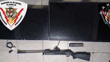 El delincuente Ariel Jesús G. había caído minutos antes de las 5 con un televisor de 39 pulgadas, otro de 32 pulgadas y un rifle de aire comprimido. Todos los elementos los llevaba envueltos en una lona de pileta.
