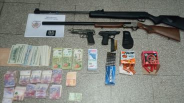 El hombre de 58 años fue arrestado tras una breve persecución a pie, cuando el sospechoso ingresó a un domicilio en el que se incautaron un arma calibre 380 con nueve cartuchos en el cargador; una pistola negra; cartuchos calibres 12, .380 y 12/70; una escopeta calibre 12/70; un rifle de aire comprimido; una réplica de arma; 11.300 dólares y 385.990 pesos.