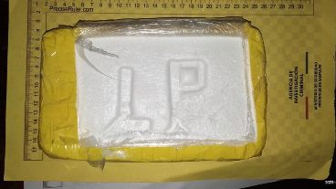 La intervención permitió dar con dos panes de cocaína de máxima pureza, de un kilo cada uno y estampados con las letras “LP”. Los escondían en un bolso camuflado a su vez en un casco de moto.