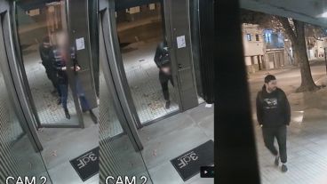 En el video de la cámara que da hacia la calle y toma toda la cuadra, se ve que el hombre viene caminando unos metros por delante, mira hacia atrás y se queda en el hueco de la entrada al inmueble para esperar que ella pase. El reloj marcaba las 4.31 de la madrugada.