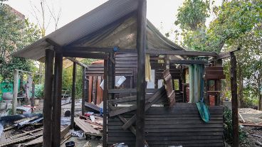 La propiedad fue prácticamente desmantelada. En el patio de la cabaña, entre la vegetación frondosa, quedaron apuntes desperdigados, anotaciones íntimas, maderas, un colchón percudido y un instrumento musical. También pudo verse a dos jóvenes cargando las dos hojas del portón de acceso.