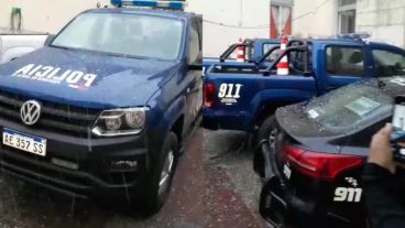 Los nuevos patrulleros que incorporó la Policía de la provincia no quedaron exentos del granizo que cayó en la región por el temporal que azotó la zona. Las nuevas camionetas fueron filmadas por algunos uniformados al momento de la lluvia de las piedritas de hielo.