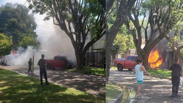 En horas del mediodía del domingo, por razones que se desconocían, explotó el motor de una camioneta Ram 2500 de color rojo, que se encontraba estacionada frente a viviendas en José C. Paz y Herrera, a unos metros del Hospital Alberdi.