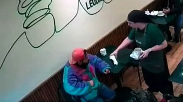 El programa De 12 a 14 difundió las imágenes de las cámaras de seguridad del local, donde se observa la secuencia del ataque. En el registro se percibe cómo el hombre golpea a la víctima y luego se retira caminando con total parsimonia hacia calle Córdoba.