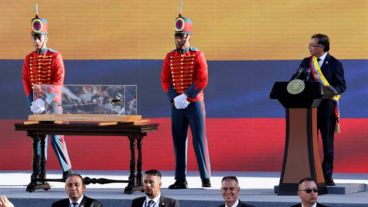 El flamante mandatario juró a las 15.19 (las 17.19 en la Argentina) ante los presidentes del Senado y luego le colocó la banda presidencial la senadora María José Pizarro, hija de Carlos Pizarro, compañero del mandatario en la guerrilla del M-19 y asesinado en 1990, cuando era candidato a la Presidencia.