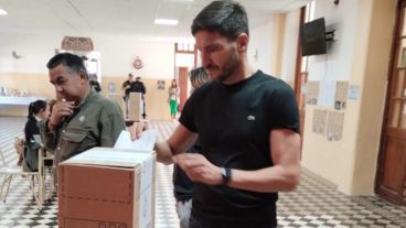 El gobernador electo de Santa Fe, Maximiliano Pullaro, votó este domingo a las 9 en la Escuela Domingo F. Sarmiento de su Hughes natal.