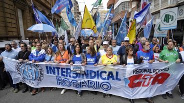 A la cabeza de la movilización estaban los dirigentes de esos dos sindicatos y de otros como Amsafé, Sadop, Bancarios, Municipales, universitarios y Prensa, entre otros.