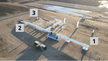Una imagen aérea de la planta de Salliqueló tomada por la empresa Energía Argentina en la previa del acto permite ver que el ducto que pasa por detrás del escenario utilizado durante la inauguración conduce hacia la trampa de scraper (con el número 1 en la imagen).