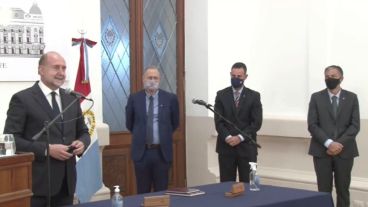 La asunción de los nuevos ministros se llevó a cabo por la noche en el Salón Blanco de la Casa Gris, ubicada en la capital provincial.