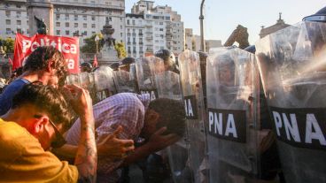En línea con el protocolo antipiquete establecido por el Ministerio de Seguridad, el Gobierno dispuso un amplio cordón en las inmediaciones del recinto, impidiendo a los manifestantes que bajen a la calle. Sin embargo, cuando comenzó a incrementarse el número de manifestantes, Gendarmería Nacional comenzó a avanzar hacia ellos con la intención de que liberen el tránsito.