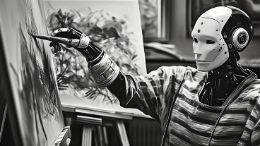 Sin embargo, entre los cientos de psicografías recopiladas en diferentes publicaciones a lo largo de las últimas décadas, recientemente comenzaron a tomar relevancia una serie de dibujos proféticos que no solo anticipaban el surgimiento de la inteligencia artificial y los robots antropomorfos, sino la potencial amenaza que estas tecnologías representan para la especie humana. Especialmente llamativas son las aparentes menciones a novedades tecnológicas recientes, como la inteligencia artificial generativa y su influencia en la creación artística, tal como se puede deducir con la siguiente ilustración.