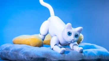 Este genial invento se parece a un pequeño gato y puede dormir, sentarse, estirarse, jugar con estambre y con sus patitas, además de responder a ciertos comandos programados por su amo.
