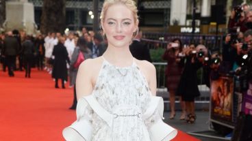 Emma Stone se ha decantado por un vestido de color blanco en gasa con un delicado bordado metalizado por todo el vestido. Algo muy poco favorecedor con el que, sin embargo, ella está radiante.