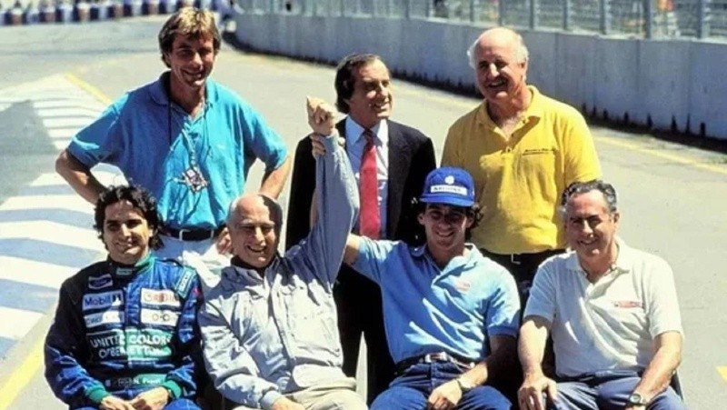En la nómina de personalidades figuraban James Hunt, Jackie Stewart, Nelson Piquet, Jack Brabham, Denny Hulme y en el centro de la toma se colocaron Senna y Fangio. Esa imagen fue muy recordada porque el piloto brasileño tomó la mano del Chueco y la colocó en alto, simulando una pelea de box y dejando en claro que era el mejor de la historia.