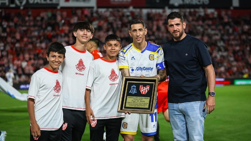 Allí, donde dio sus primeros pasos como profesional Mario Kempes, otra de las leyendas que luego sería ídolo Canalla, Di María recibió su reconocimiento con una sonrisa y agradecimiento.