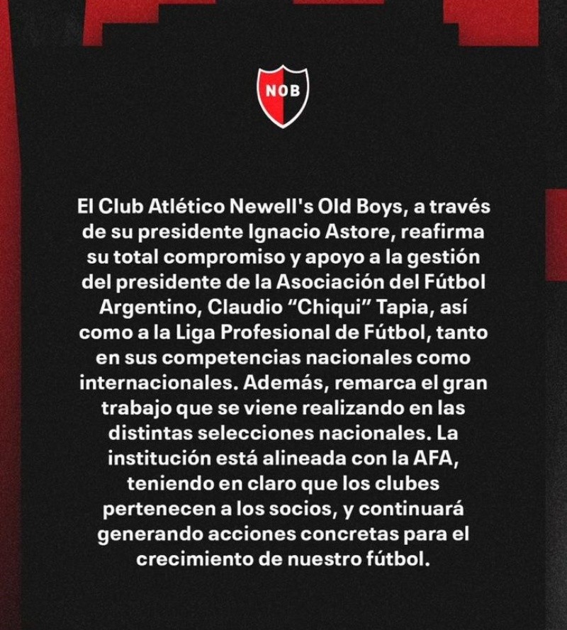 Ya en horas de la tarde, el club emitió un comunicado en el que se muestra bien alineado a la gestión de Chiqui Tapia.