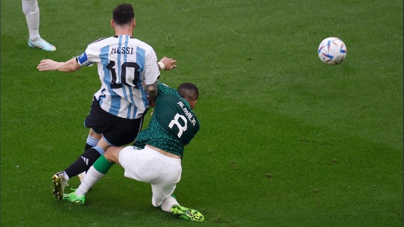 A los 22', después de un gran pelotazo de Papu Gómez a Messi, el capitán se fue solo mano a mano contra el arquero, pero el VAR semiautomático definió que estaba en posición adelantada. A los 27', una fantástica definición de Lautaro Martínez, que en su primer mano a mano en el partido picó la pelota ante la salida del portero de Arabia Saudita tras una enorme habilitación de Papu Gómez, fue anulada por el VAR, otra vez. Y a los 36', la selección tuvo otro mano a mano que terminó en gol, pero el juez de línea marcó posición adelantada de Lautaro.