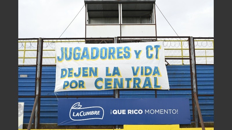 "En la cancha son ustedes los guerreros", "Jugadores y CT. Dejen la vida por Central", "Por la historia, ganamos con la camiseta" y "La ciudad está con ustedes", decían los trapos colgados en los alambrados del estadio donde entrenaba el Canalla.