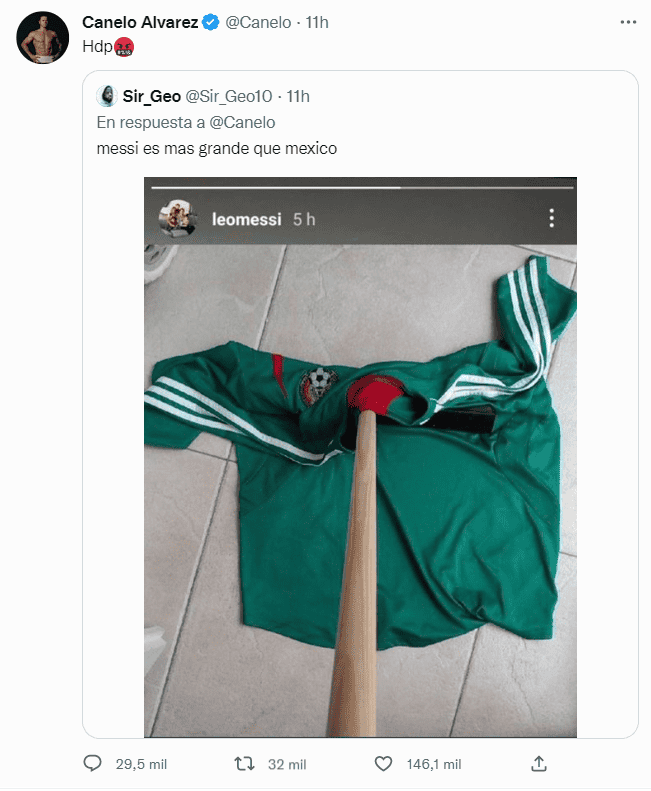 Canelo Álvarez volvió a atacar a Leo Messi en las redes sociales y republicó una noticia falsa en su cuenta de Twitter. La fake news era un montaje sobre un perfil falso de Messi en el que se veía la camiseta de la selección mexicana usada como trapo de piso de fútbo.