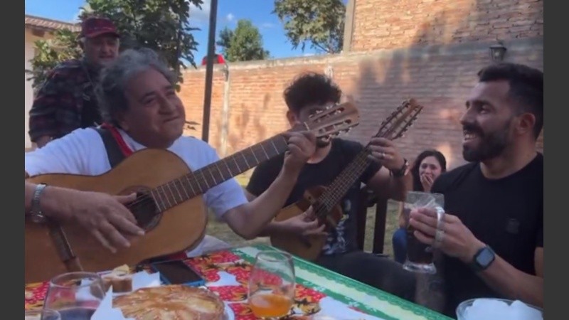 En una sobremesa y con un simpatizante de River Plate con la guitarra, el Apache interpretó a pulmón “Canto a Monte Quemado”, de Los Manseros Santiagueños, y el “show” fue transmitido en vivo por su cuenta de Instagram.