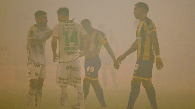 El partido tuvo que detenerse por la cantidad de humo que volvió a invadir el entorno del estadio, mientras algún que otro hincha se metía en la cancha para celebrar.
