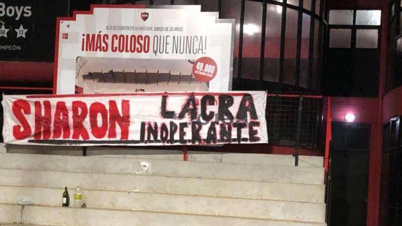 Los carteles apuntan al presidente Ignacio Astore y también a la secretaria Sharon Romero y al vicepresidente segundo Federico Ripani. "Andate Astore" rezaba uno de los pasacalles colgados durante la madrugada de este martes en distintas esquinas de la ciudad. El mismo grito se escuchó en el estadio del Parque Independencia durante las últimas presentaciones leprosas.
