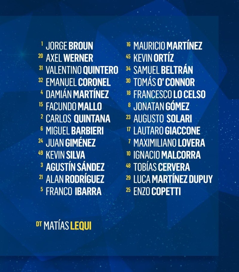 Las lesiones de los dos mencionados centrodelanteros y también las dudas sobre la presencia de Copetti en la previa hicieron que Lequi sume a los concentrados a Luca Martínez Dupuy, quien no fue tenido en cuenta durante las última etapa de Miguel Russo y tampoco en el arranque del nuevo DT. Es una de las alternativas para el ataque junto a Tobías Cervera.
