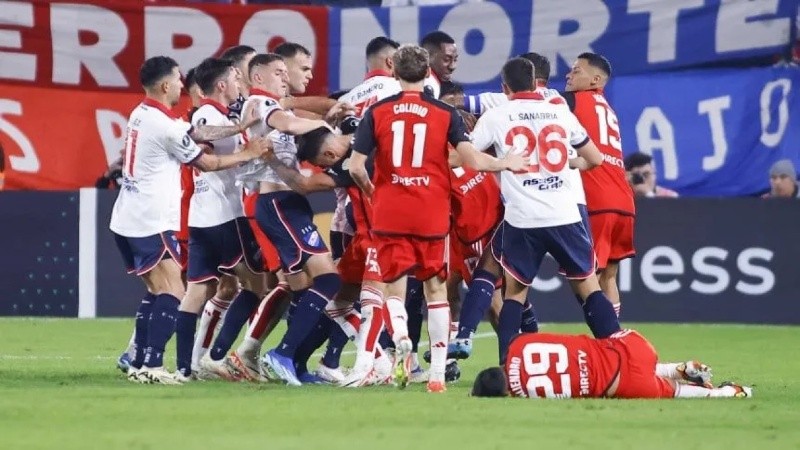 Después de apaciguar las aguas, el árbitro Anderson Daronco observó el VAR y, aunque se esperaba la roja por el planchazo y una adicional por propinarle una piña en la cara a Paulo Díaz para Franco Romero, todo terminó en apenas una amarilla para éste.