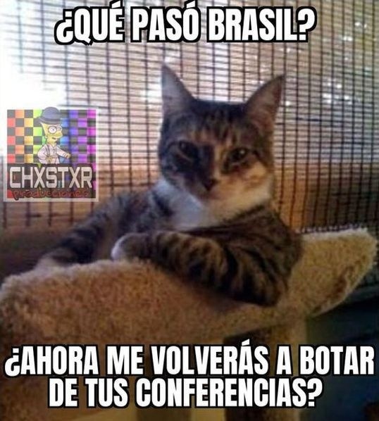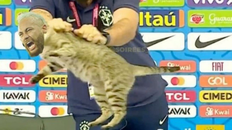 El principal protagonista de las cargadas hacia Brasil fue un gato. Haciendo mención a lo ocurrido en la previa del partido de hoy, cuando la estrella del Real Madrid, Vinicius Jr. estaba ofreciendo la conferencia de prensa de rigor, y un gato se subió a la mesa, quedó cara a cara con el futbolista brasileño y el jefe de prensa de la selección brasilera lo tomó de los pelos del lomo y lo soltó detrás del escritorio en un polémico gesto.