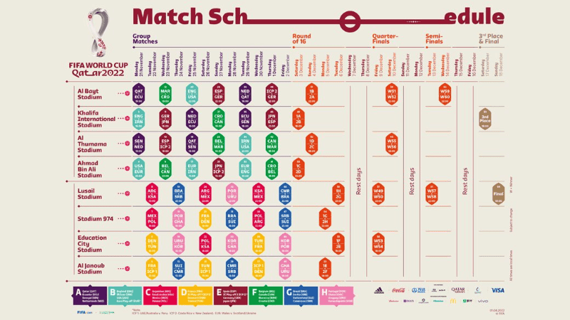 En cambio, para los octavos y cuartos de final comenzará la acción a las 18 horas de Qatar (12 en Argentina) y a las 22 (16 de Argentina).