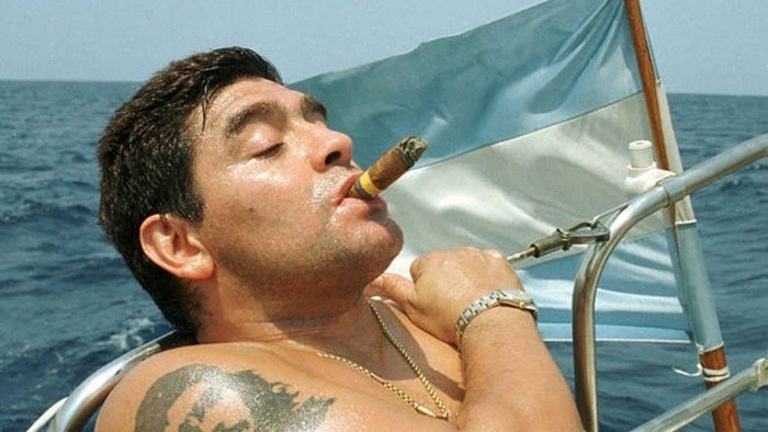 Diego Armando Maradona, fumando un puro en Cuba.