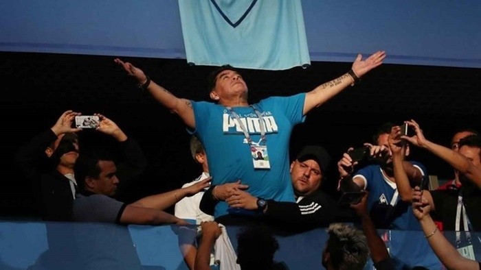 Maradona, durante un partido de Argentina del Mundial de Rusia.