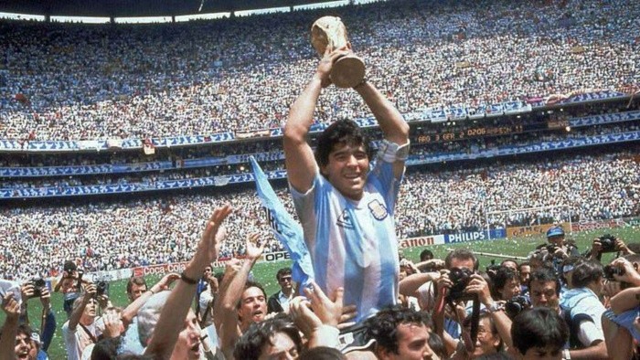 Maradona levantando la copa del mundial de 1986, la segunda de Argentina.