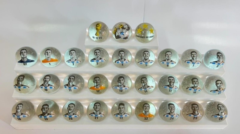 Es que, en diciembre del 2023, cuando se cumplió un año de la obtención de la Copa del Mundo en Qatar, desde Tinka decidieron hacer un particular homenaje. Así fue como sacaron la colección especial de bolitas con las caras de todo el plantel argentino que se consagró ante Francia.