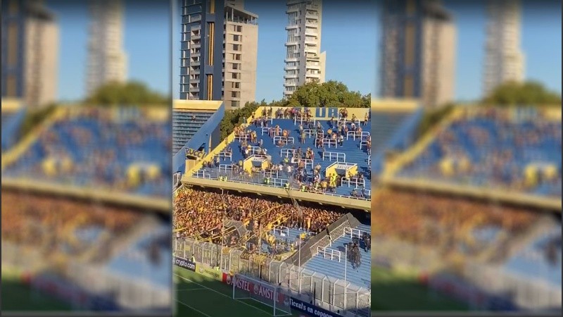 En la previa del partido entre Rosario Central y Peñarol hubo disturbios entre las hinchadas. Desde la tribuna alta que da a Génova comenzaron a tirar vallas hacia la popular de Peñarol, ubicada debajo y repleta de gente.