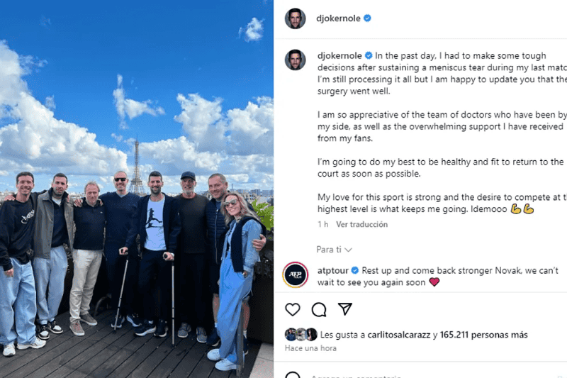 El serbio dejó un mensaje esperanzador a través de sus redes sociales que motivó a sus fans: "En los últimos días, he tenido que tomar muchas decisiones. La operación ha ido bien e intentaré volver a las pistas lo antes posible. Tengo un gran amor por el tenis y el deseo competir al más alto nivel es lo que me mantiene con ganas de continuar. Vamos".