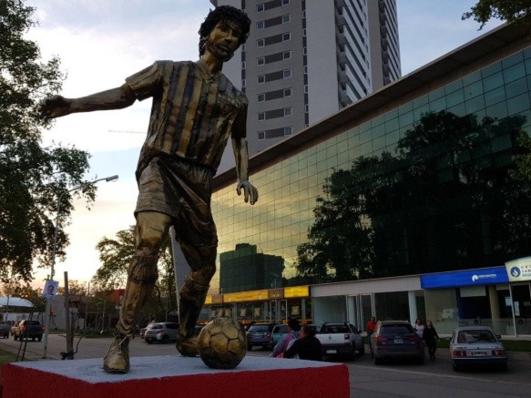 La escultura ya fue instalada en la plazoleta y para este 18 de octubre está programado un homenaje al Payaso Aimar, que actualmente se desempeña como coordinador de la selección Sub 17.