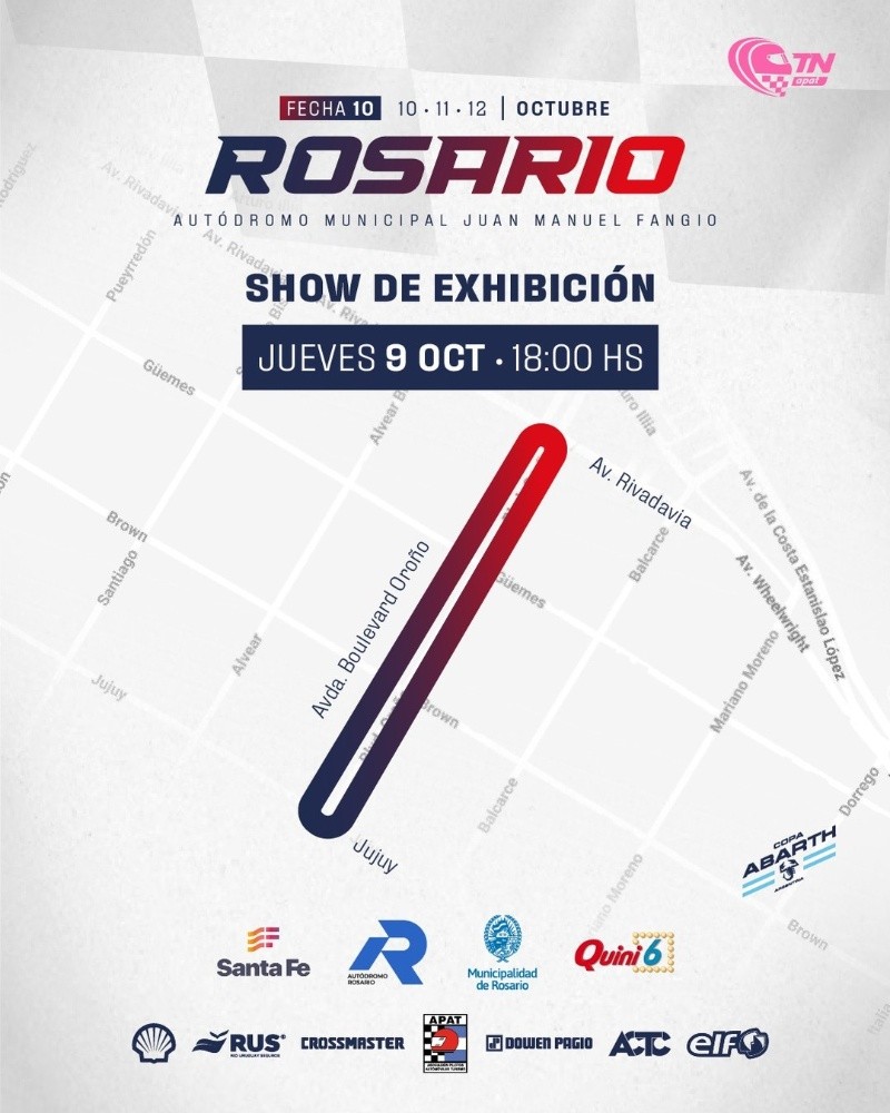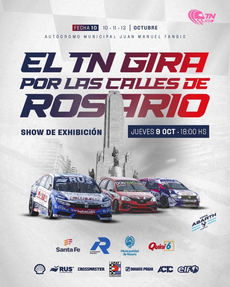En la previa de las tres jornadas, el jueves 9 de octubre, el TN recorrerá las calles de la ciudad. Desde las 18 hs habrá un show exhibición sobre Bv Oroño. Según informaron a través de las redes sociales de Prensa TN, el recorrido será desde Av. Wheelright hasta calle Jujuy, dando la vuelta por todo el bulevar.