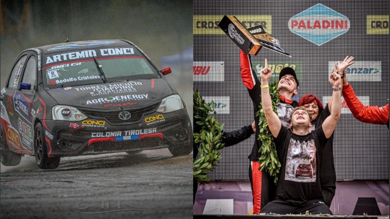 La emotiva llegada al parque cerrado de @Gaston_Iansa quien ganó con el auto de su amigo Alex Conci.