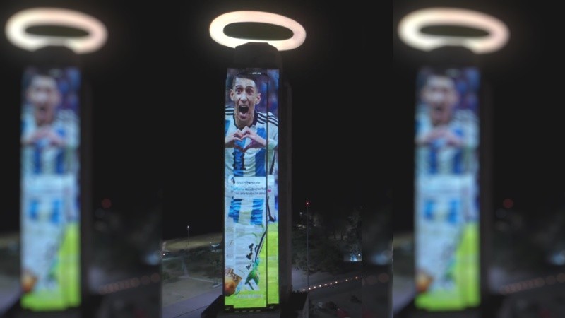 Además, para ilustrar la situación generaron un mapping con su imagen sobre el Monumento Nacional a la Bandera y la aureola de ángel sobre la cabeza de Fideo