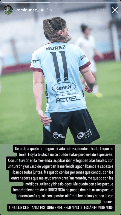 Romina Núñez, actual jugadora de la Selección argentina y exfigura de UAI, expresó su decepción a través de las redes sociales: “Un club al que le entregué mi vida entera, donde di hasta lo que no tenía. Hoy la tristeza no se puede evitar, pero era de esperarse”, escribió en Instagram.
